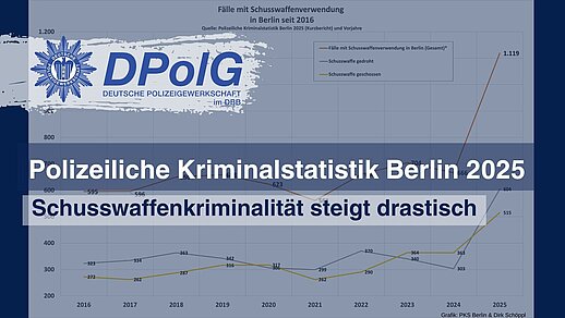 30. März 2026 Polizeiliche Kriminalstatistik Berlin 2025Schusswaffenkriminalität steigt drastisch in Berlin 1.119 Fälle registriert – ein Anstieg um 68 Prozent gegenüber dem Vorjahr. Besonders auffällig: Die Zahl der Bedrohungen mit… weiter 30. März 2026OsteraktionDPolG Berlin Mitgliederwerbeaktion Liebe Kolleginnen und Kollegen, wir wünschen euch allen schöne und entspannte Oster-Feiertage! Im Zeitraum vom 1.04. bis… weiter27. März 2026Rezept #2 für die Dienststellenküche der Polizei BerlinHelles Kitchen: Protein-Wraps schnell und einfach Helles Kitchen liefert Rezept #2: diesmal einen schnellen Protein-Wrap für die Dienststellenküche der Polizei Berlin. Das… weiter23. März 2026Nach Angriff auf kritische Infrastruktur: Anhörung zum Berliner DatenschutzgesetzDPolG-Vize Frank Teichert fordert klare Regeln und praxistaugliche Umsetzung im Berliner Datenschutzgesetz Im Abgeordnetenhaus Berlin macht DPolG-Vize Frank Teichert deutlich: Die Novelle des Datenschutzgesetzes stärkt den Schutz… weiter Weitere Nachrichten