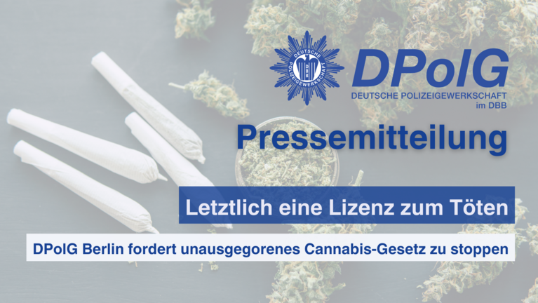 Archiv Archiv 2024Seite 5 von 6. vorherige ....4 5 6 nächste 19. März 2024 Mehr Polizeieinsätze an SchulenDPolG Berlin: Erfolg von Aufklärung und PräventionDie Polizei Berlin hat der Deutschen Presse-Agentur dpa Statistiken zu Gewalttaten an Schulen mitgeteilt. "Einsatzzahlen…mehr 15. März 2024 Nach Häufung von BrandanschlägenDPolG Berlin sieht Linksextremismus im Aufwind“Die jüngsten Brandanschläge auf die A100 sind kein gutes Omen im Ausblick auf die nächste Zeit”, sagt Bodo Pfalzgraf,…mehr 12. März 2024 ABGESAGT - MitgliederversammlungKreisverband Dir E/V (inkl. Dir ZS)Liebe Kolleginnen und Kollegen der Dir E/V und der Dir ZS, die Mitgliederversammlung am 24.04.2024 entfällt leider. Sobald…mehr 07. März 2024 PressemitteilungPM DPolG Berlin fordert unausgegorenes Cannabis Gesetz zu stoppenLetztlich eine Lizenz zum Töten - DPolG Berlin lehnt Cannabis-Gesetz ab.mehr 07. März 2024 MitgliederversammlungKreisverband Dir 4 SüdDer Kreisverband Dir 4 Süd lädt zur Mitgliederversammlung am Dienstag, den 09. April 2024 um 17:00 Uhr ein.mehr 06. März 2024 Weltfrauentag - Mitglieder werben MitgliederDPolG Berlin MitgliederwerbeaktionLiebe Kolleginnen und Kollegen, anlässlich des internationalen Frauentages am 8. März 2024 möchten wir den Frauen, die bei…mehr 28. Februar 2024 Einladung zur JahreshauptversammlungKreisverband Dir 3 OstLiebe Kolleginnen und Kollegen, wir möchten euch herzlich zur Jahreshauptversammlung des Kreisverbandes Dir 3 Ost einladen.mehr 25. Februar 2024 Resolutiondbb berlin für Vielfalt und Toleranz - gegen ExtremismusMit großer Besorgnis beobachtet der dbb beamtenbund und tarifunion berlin (dbb berlin) das Erstarken extremistischer Kräfte…mehr 22. Februar 2024 KreisvorstandssitzungKreisverband Junge Polizei/PolizeiakademieDer Kreisverband JP/PA lädt zur Kreisvorstandssitzung am Montag, den 11. März 2024 um 16:00 Uhr ein.mehr 19. Februar 2024 MitgliederversammlungKreisverband Dir 2 WestDer Kreisverband Dir 2 lädt zur Mitgliederversammlung am Mittwoch, den 15. Mai 2024 um 18:00 Uhr ein.mehr 06. Februar 2024 Freispruch für Abou-ChakerFatales Signal Richtung Organisierte KriminalitätZum Prozessende - Rapper Bushido gegen Ex-Manager Abou-Chaker - sagt der DPolG Landesvorsitzende Bodo Pfalzgraf: “Einmal mehr…mehr 06. Februar 2024 Unhaltbare Zustände im MaßregelvollzugDPolG Berlin fordert Masterplan statt Knasttourismus & Fake-SuchtWas darf Sicherheit kosten? Diese Frage stellen wir erneut - angesichts der unhaltbaren Zustände, die im Berliner…mehr 02. Februar 2024 ParkraumbewirtschaftungDie komplizierte Geschichte geht weiterAusnahmegenehmigung soll 40 oder 60 Euro kosten.mehr 02. Februar 2024 Special Olympics Nationale Spiele Thüringen 2024#GemeinsamStark...… ist das diesjährige Motto der Special Olympics Nationalen Spiele in Thüringen, bei denen vom 29.01.-02.02.24 900…mehr 29. Januar 2024 30 % der Einsatzwagen stehen still - Reserven sinken deutlichDPolG Berlin fordert: Fuhrpark & Werkstättenpersonal aufstocken!Fast jeder dritte Einsatzwagen auf den Abschnitten (EWA) der Polizei Berlin steht heute still. In 4 von 7 betrachteten…mehrSeite 5 von 6. vorherige ....4 5 6 nächste