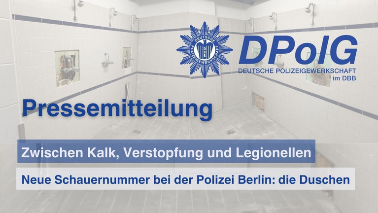 Archiv Archiv 2024Seite 6 von 6. vorherige ....45 6 27. Januar 2024 Bröckelnder Putz, fehlende Fliesen und verstopfte KlosDPolG Berlin: Das Land Berlin muss seine Fürsorgepflicht einhalten!Viele sanitäre Anlagen der Polizei Berlin bleiben ein Trauerspiel. Nächster Akt*: die Toilettenräume der Einsatzleitzentrale…mehr 22. Januar 2024 Zwischen Kalk, Verstopfung und LegionellenNeue Schauernummer bei der Polizei Berlin: die DuschenNach dem Brötchenskandal nun die nächste Schauernummer bei der Polizei Berlin: Legionellenbefall, verkalkte Hähne, verstopfte…mehr 17. Januar 2024 Verjährungsfristen beachten, Fachpersonal einstellenDPolG Berlin: "Bußgeldstelle & Politik brauchen die Vision Zero”Zwischen Januar und November 2023 sind in Berlin insgesamt 46.746 Verkehrssünder davongekommen, weil ihnen die Berliner…mehr 12. Januar 2024 Gefährliches Berlin: Immer mehr RohheitsdelikteDPolG Berlin: "Wir erleben eine Kettenreaktion der Gewalt."In Berlin gibt es einem Bericht der Deutschen Presse-Agentur zufolge einen alarmierenden Anstieg von Gewalttaten. "Wir…mehr 09. Januar 2024 JahreshauptversammlungKreisverband Dir 4 SüdDer Kreisverband Dir 4 Süd lädt zur Mitgliederversammlung am Dienstag, den 13. Februar 2024 um 17:00 Uhr ein.mehr 08. Januar 2024 MitgliederversammlungKreisverband Dir E/VLiebe Kolleginnen und Kollegen, zur Mitgliederversammlung möchten wir euch recht herzlich zum Jahresstart einladen.mehr 05. Januar 2024 dbb Monitor öffentlicher Dienst 2024Staatsdienst: Beschäftigte wollen digitaler arbeitenImmer mehr Aufgaben, immer weniger Personal: Damit der öffentliche Dienst trotzdem funktionieren kann, muss er schnell…mehrSeite 6 von 6. vorherige ....45 6